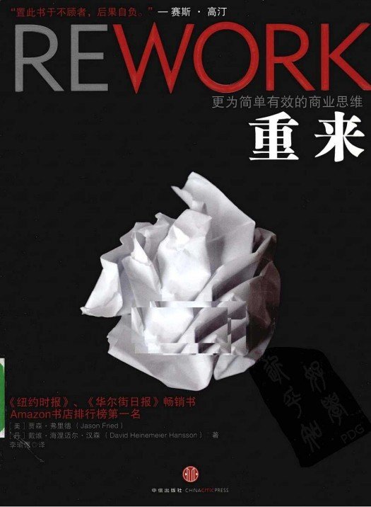 用直截了当的语言和崇尚简约的方式,《重来》是每一个梦想着拥有自己的事业的人的完美指南。不管是作为中坚力量的企业家、小企业主,还是深陷令人不快的工作中的职场中人、被炒鱿鱼的受害者,抑或是想要“脱贫”的艺术家,都能在这一页页中找到弥足珍贵的指引。