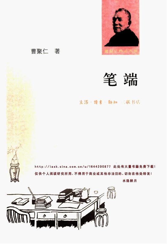 《笔端》内容简介:作者自言,民国二十年八月间,几个不甘于寂寞的中年人,集合拢来办《涛声》,由是作者恢复深夜写文章的旧脾气,所写也多为杂烩式的。“到底是中年人了,觉得自己的影子也颇可留恋了”,其中一部分,积聚在这小册子里,早先由天马书店印行,今又由三联书店重刊。《金楼子·立言》云:“笔,退则非谓成篇,进则不云取义,神其巧慧,笔端而已。”作者谦言,为文无所取义,即以“笔端”题名。