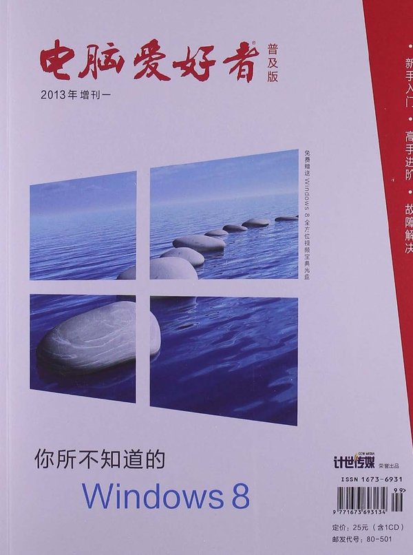 《电脑爱好者》杂志1993年6月创刊之日起,每年杂志社都会集结其精华,出品极具收藏价值的《2013年《电脑爱好者》普及版增刊1:你所不知道的Windows 8》。《2013年《电脑爱好者》普及版增刊1:你所不知道的Windows 8》分别集成全版杂志,硬件、软件、网络全景教学,应用专题、解决方案、工作指南、学习参考、娱乐生活、购物导览、评测推荐无所不有,学、用、购、娱乐一站式服务,实为IT科普领域的四库全书。剔除了广告和过时的内容,增加了人性化的关键词检索,成为电脑用户学习和查阅、珍藏和馈赠必备的电脑工具书。