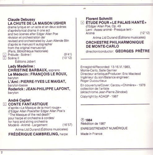 专辑英文名: Debussy:La Chute de la Maison Usher / Caplet:Conte Fantastique / Schmitt:Etude pour 'Le Palais Hante'