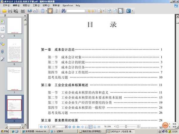 : 第一章 成本会计总论 第一节 成本会计对象 第二节 成本会计的职能 第三节 成本会计的任务 第四节 成本会计工作组织 思考及练习题 第二章 工业企业成本核算概述 第一节 工业企业成本核算的内容和意义 第二节 工业企业成本核算的基本要求和基本原则 第三节 工业企业生产经营管理费用的分类 第四节 工业企业成本核算的一般程序 思考及练习题 第三章 要素费用的核算 第一节 材料费用分配的核算 第二节 外购动力费用的核算 第三节 薪酬费用分配的核算 第四节 折旧费用分配的核算 第五节 其他费用分配的核算 思考及练习题 第四章 辅助生产费用的核算 第一节 辅助生产费用归集的核算 第二节 辅助生产费用分配的核算 思考及练习题 第五章 制造费用的核算 第一节 制造费用归集的核算 第二节 制造费用分配的核算 思考及练习题 第六章 废品损失和停工损失的核算 第一节 废品损失的核算 第二节 停工损失的核算 思考及练习题 第七章 生产费用在完工产品和在产品之间分配的核算 第一节 在产品数量的核算 第二节 生产费用在完工产品和在产品之间的分配方法 第三节 经营管理费用的核算 思考及练习题 第八章 产品成本计算的品种法 第一节 生产特点和管理要求对成本计算的影响 第二节 产品成本计算的品种法 思考及练习题 第九章 产品成本计算的分批法 第一节 分批法的特点 第二节 分批法举例 第三节 简化分批法 思考及练习题 第十章 产品成本计算的分步法 第一节 分步法的特点 第二节 逐步结转分步法 第三节 平行结转分步法 思考及练习题 第十一章 产品成本计算的辅助方法 第一节 产品成本计算的分类法 第二节 联产品、副产品的成本计算 第三节 产品成本计算的定额法 思考及练习题 第十二章 成本报表的编制与分析 第一节 成本报表概述 第二节 成本报表分析概述 第三节 全部产品成本计划完成情况分析 第四节 可比产品成本降低任务完成情况分析 第五节 主要产品单位成本分析 思考及练习题 第十三章 成本预测 第一节 成本预测概述 第二节 成本预测方法 思考及练习题