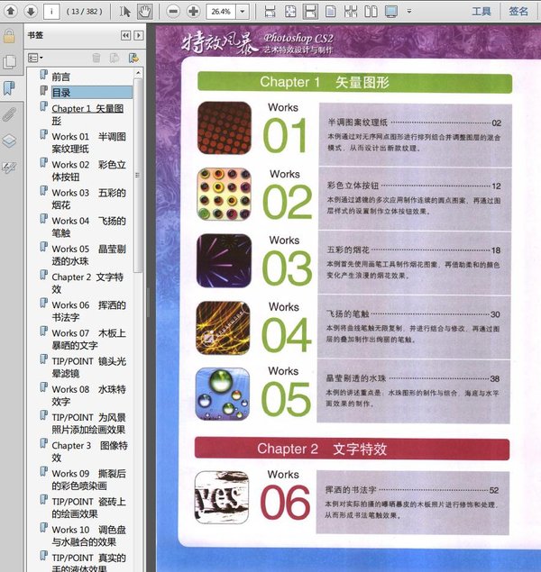 本书案例创意新颖且效果精美,技术含量和艺术价值均具有颇高水准,同时涵盖了各种高难度特效的制作技巧和设计技法,如水和冰块的透明质感、玻璃材质、反光金属,破旧纸张、粗糙墙壁、暴晒木板等物体的质感和纹理表现等。希望读者能够汲取书中的精华,融会贯通后成为自己的知识与技能,创作出比书中案例更加优秀的设计作品。