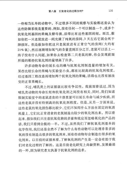 : 第一章 老化的矛盾 第二章 虚报年龄和生之有涯 第三章 老化随着时间改变吗? 第四章 老化是遗传的吗? 第五章 为什么会老化? 第六章 生命的步调 第七章 演化论对老化的解释 第八章 引发老化的过程为何? 第九章 生殖的老化,停经和健康 第十章 减缓老化和延长生命