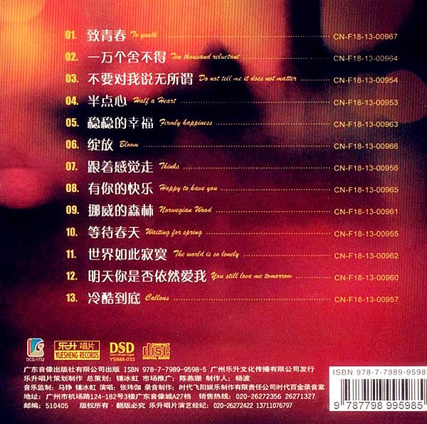 选曲,编曲均量身打造,专辑选曲制作首首选精,敲细磨,呕心沥血!音乐与发烧的完美融合 一张绝不容错过的极品发烧。