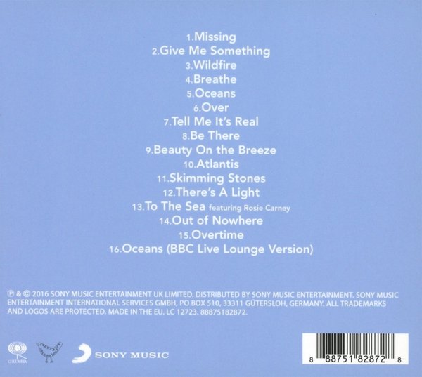 : 1. "Missing" 3:27 2. "Give Me Something" 2:38 3. "Wildfire" 3:44 4. "Breathe" 3:09 5. "Oceans" 3:35 6. "Over" 3:44 7. "Tell Me It's Real" 2:58 8. "Be There" 3:15 9. "Beauty on the Breeze" 2:41 10. "Atlantis" 3:49 11. "Skimming Stones" 3:35 12. "There's a Light" 3:42 13. "To the Sea" 3:17 14. "Out of Nowhere" 2:35 15. "Overtime" 2:59 16. "Oceans" (BBC Live Version) 3:28