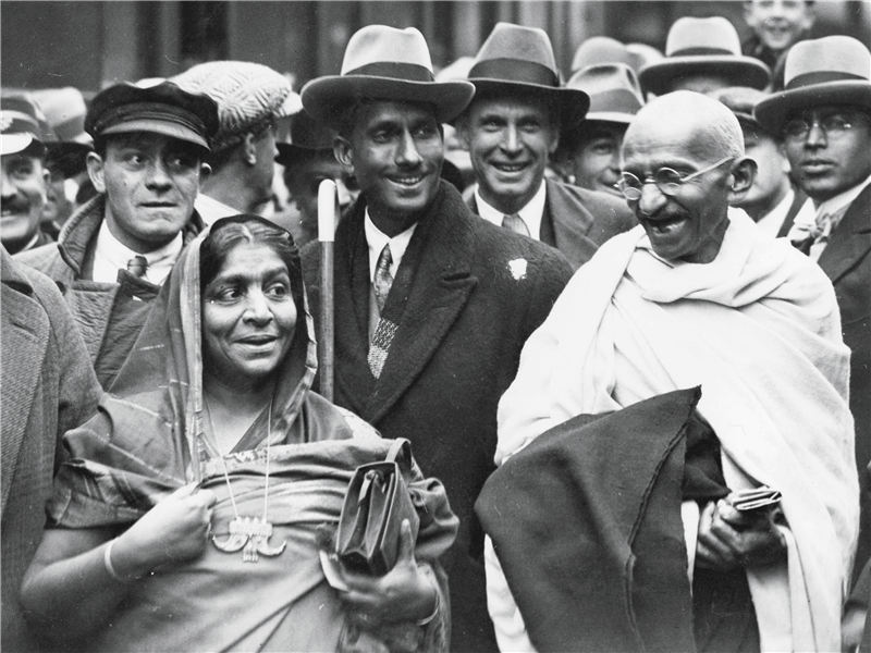 1930年11月,“圣雄”甘地(前右)和国大党女领袖沙拉金尼·奈都(前左)在伦敦出席圆桌会议