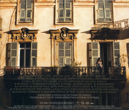 : 01. The Chart Of Love -Keep The Light- (05:04) 02. A Question Of Honour (05:18) 03. Ave Maria (02:54) 04. Stand Alone (Vocalise) (04:14) 05. I Will Be With You (Where The Lost Ones Go) (04:33) 06. Running (05:39) 07. Forbidden Colours (04:30) 08. Angel (05:12) 09. Dans La Nuit (02:45) 10. Sarahband (03:51) 11. A Whiter Shade Of Pale (03:39) 12. En Aranjuez Con Tu Amor (03:51) 13. Fleurs Du Mal (04:10) 14. The Phantom Of The Opera (Live) (04:26) 15. Done (Pop Version) (03:41) 16. Kaze No Torimichi (04:14) 17. Amazing Grace (03:06) 18. Time To Say Goodbye (Solo Version) (04:04)