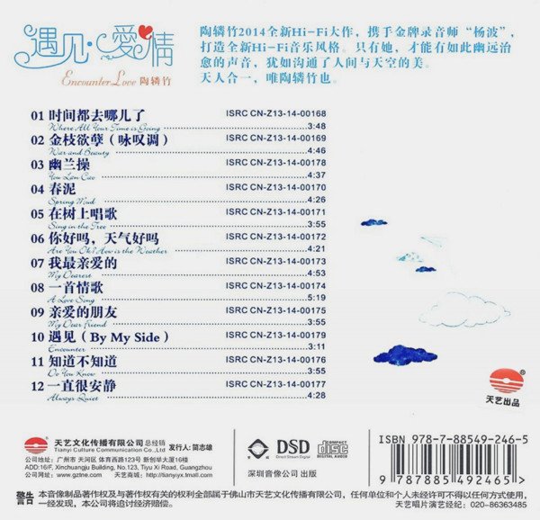 令人惊艳的治愈系女声,给你听觉与灵魂的双重满足享受! 陶辚竹2014全新HI-FI大作,携手金牌录音师"杨波",打造全新HIFI音乐风格。 只有她,才能如此幽远治愈的声音,犹如沟通了人间与天空的美。天人合一,唯陶辚竹也。 史上最干净的女声吟唱,至真至纯,清新谈雅,静静地聆听,静静的回味…… 旖旎多情、典雅馨香、沁人心脾、馥郁芬芳,传统民族乐器的精巧搭配演绎着一首首动人旋律, 一个纯净的一尘不染的清澈嗓音和极致清新的风格,在隔岸的年华里低吟浅唱…… 带你远离都是的喧嚣,去感受那份久远的纯真。