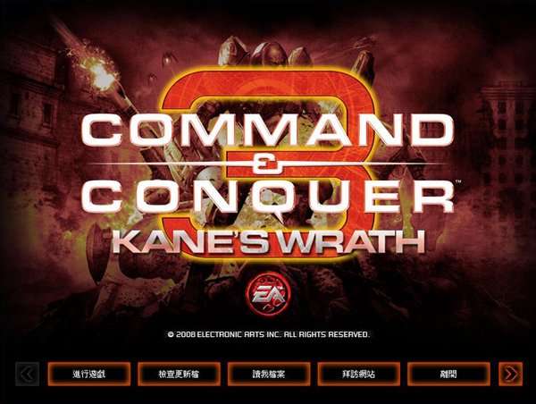 【中文名称】:命令与征服 3:凯恩之怒 【游戏别名】:终极动员令 3:肯恩之怒 【英文名称】:Command & Conquer Kane's Wrath 【製作发行】:EA 美商艺电/EA Games 【版本资讯】:繁体中文版 【游戏容量】:DVD×1 【游戏平台】:个人电脑/PC 【游戏类型】:即时策略/RTS 【发售日期】:2008年3月24日 【官方网址】:http://www.ea.com.tw/Products/Products_Info.aspx?ID=744 【游戏简介】 ※