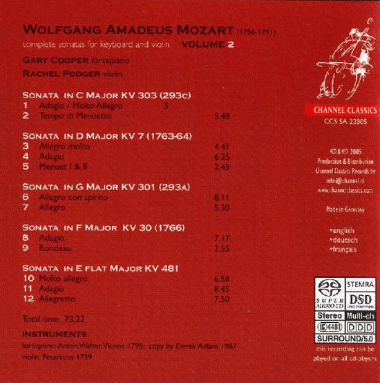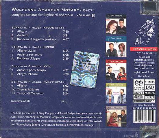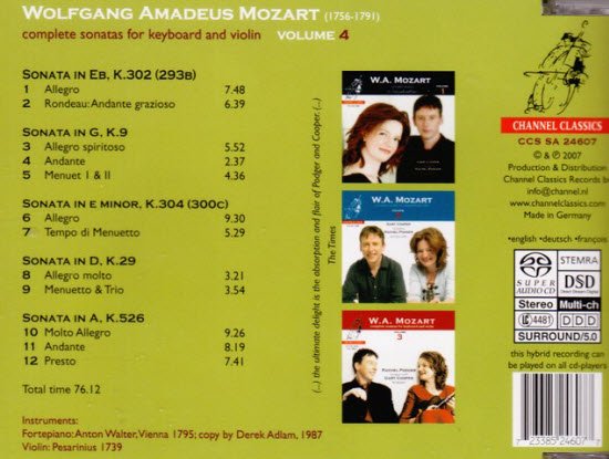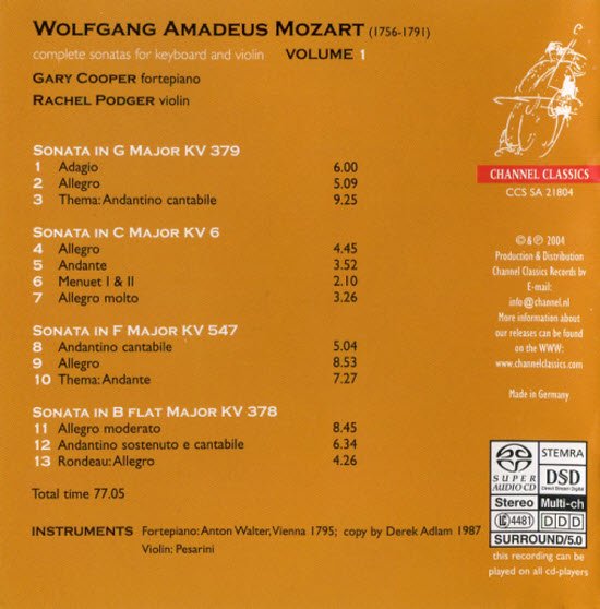 Rachel Podger & Gary Cooper -莫札特小提琴奏鸣曲全集(Mozart Complete Violin Sonatas)[8 C