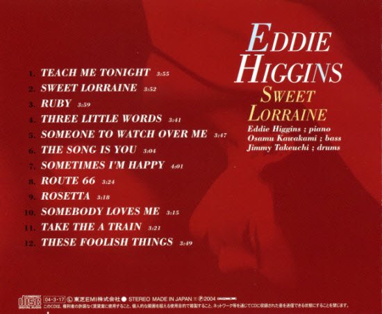 Sweet Lorraine album for sale by Eddie Higgins was released Jan 01, 2006 on the EMI label. Sweet Lorraine CD music contains a single disc with 8 songs.