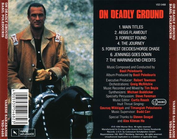 《 绝地战将 On Deadly Ground 》电影原声带由“Basil Poledouris”精心制作。在90年代之前,“Basil Poledouris”也以管弦乐为元素,完成过许多气势雄伟,震撼人心的配乐作品,在90年他推出了一部结合了电子乐和管弦作曲的配乐作品《 猎杀红色十月 The Hunt for Red October 》,更是作品中的代表作。