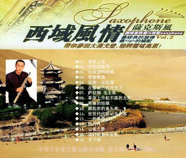 这里有最深邃唯美的旋律,陪伴你的假日,深呼吸,做个极致小资; 这里有最经典美妙的西域情歌,掀动你的怀旧心潮,西风伴爱回归; 这里有最完美流畅的演奏,技艺与品位同在,因为选择所以挑剔。 自从王洛宾从新疆采下第一朵带着朝露的红玫瑰之后,西部情歌便 成了我们口中的最爱小曲,悄然带出我们心中对热情单纯的爱情的 渴盼,进而连西部的明月.飘香的美酒都成为我们脑中的向往。西域 之恋,表现为一块绣花丝巾的绚丽.一片绿地的葱茏和一首民歌小调 的明快深情。烂漫委婉的萨克斯最适合在都市繁华喧哗的背后打开 一方恬静的自我空间,铜管的华丽高贵为闹中取静的人们的休闲镀 上优雅的气度。