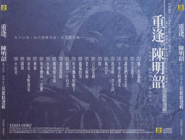 1998年,台湾滚石为了向民谣歌手致敬,出版了一个系列民歌精选辑,命名为“重逢”。共有14张精选,14位歌手(组合)。本张是第5张,编号是0067。 陈明韶在民歌时期的作品,除了《金韵奖第一辑》中的《情深无边》 、《金韵奖第七辑》里《阳光的地方》与《故乡.回响》第三首单曲之外,因其娇好的外型及出色的嗓音,新格唱片亦为其出版了《伞下的世界》、《陈明韶的歌》、以及《浮云游子》等三张专辑唱片。和许多民歌手一样,歌唱只是他们人生中的一小部分。陈明韶在1980年出版完最后一张《浮云游子》之后,也于1984年告别台湾歌坛,负笈美国。自此一别20多年,直到2004年民歌30年系列活动[好民歌]演唱会中,才让我们又再一次亲睹其久别后的歌声及风采。