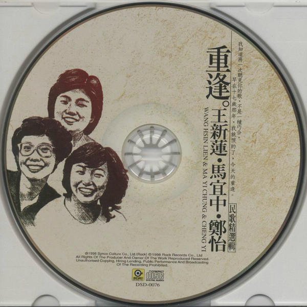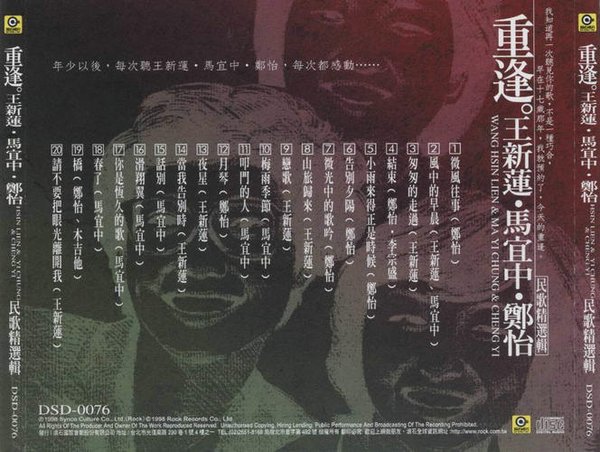 1998年,台湾滚石为了向民谣歌手致敬,出版了一个系列民歌精选辑,命名为“重逢”。共有14张精选,14位歌手(组合)。本张是第14张,编号是0076,本套资源全部发完。