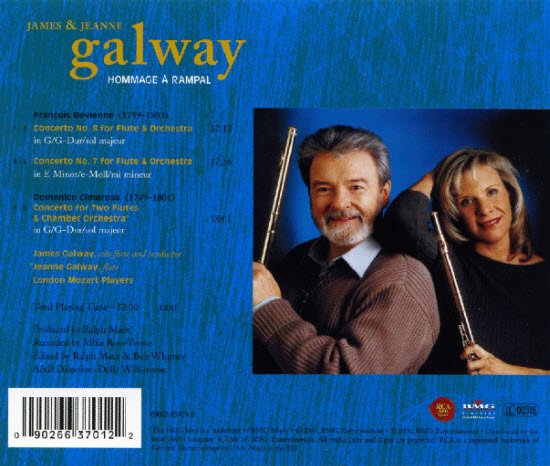 It comes as no surprise that, a year after Rampal's death, James Galway should dedicate a disc to him. After all, Galway has always cited the Frenchman as his true mentor - and it was with Rampal that Galway first spied a golden flute. The recording actually happened over a year before Rampal died but appropriately enough contains concertos by the French Classical composer François Devienne, of whose music Rampal was a noted interpreter.