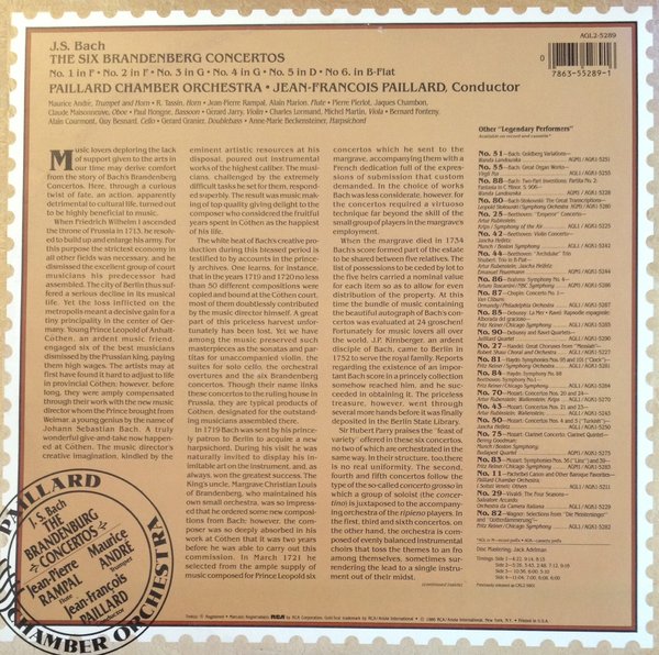 5 of 5 people found the following review helpful 5.0 out of 5 stars The Finest Recorded Version of the Brandenburgs... ever February 5, 2011 By John Parker Marmaro Let me begin by hoisting my colors: I do not care for "period instrument" performances. I have heard scores of them. And I can honestly say that, far from liking the majority, I have actively disliked them. I probably can count on one (or possibly it would have to be two) hands such recordings i HAVE liked. For me, these performances are dry academic surmises, not music to engage with. (The lack of vibrato playing only exacerbates the caterwauling, nails-on-the-blackboard tocsins that are the sonorities of most "period" renditions.) And yet, nowadays, it is becoming harder and harder to find good modern-instrument performances of Baroque music, and even of high Classical. Indeed, it seems like no one is releasing discs on modern instruments at all. So we are left with older performances... and as this particular one is available, far from being a problem, it is a blessing. Or would be if this would again be issued on CD . This is the most beautiful of all the performances of the Brandenburgs I have ever heard. Of course, one might expect it to be so, with the legendary soloists participating. There is Jean-Pierre Rampal on flute in nos. 2, 4 and 5; the second is blessed with Maurice Andre's impeccable clarino on trumpet, and he also plays one of the two hunting-horns in the no.1; Anne-Marie Beckensteiner's harpsichord provides the continuo throughout, the beautiful solo playing in no. 5, and the splendid cadenza filling out the two-chord slow movement of no.3. All the renditions are splendid, and I especially love nos. 2, 3 and 5. Indeed, the whirling Gigue finale to no. 3 has never been better rendered, nor indeed, have the outer two movements of no. 2 (with Mr Andre's and Mr Rampal's magisterial playing). This has been bounced around from label to label: Erato, The Musical Heritage Society, Sony Japan, BMG/RCA Red Label.... and none were ever in print for very long, it seems. It is about time this classic recording --- which should be a foundation element in any good music collection -- was made available, once more, on compact disc -- and WIDELY!