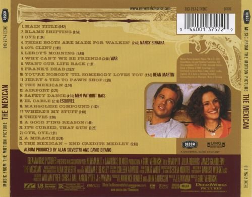 Brad Pitt和Julia Roberts联手带给了我们这部洋溢着墨西哥情调和西部风的浪漫爱情喜剧。而Alan Silvestri则创造了继《荒岛余生 Cast Away》之后的另一部独特的作品。原声听得多了以后,有时候即使你没有看过电影,光靠着对作曲家的熟悉和大致剧情环境的了解,在听之前就能够猜出几分。而《墨西哥人 The Mexican》则就是少数几个把我骗了的作品之一,和我所想象的大相径庭。Alan并没有把它当作一个轻松小品来写,而是用管弦乐、和声和美妙的独奏完成了这部迷人而又幽默的作品。