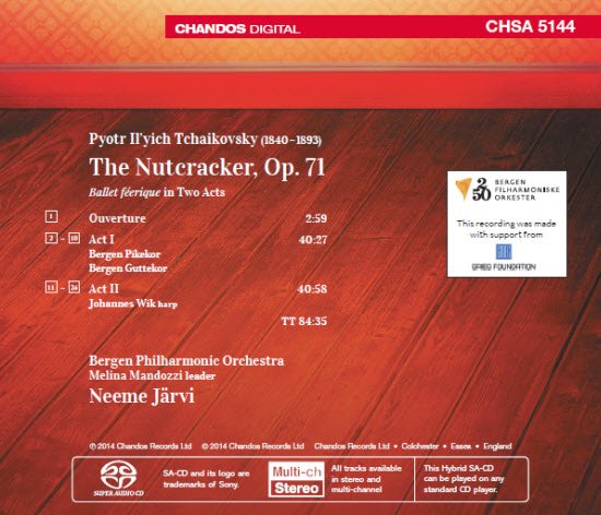This is the concluding recording in Neeme Järvi’s series with the Bergen Philharmonic Orchestra devoted to Tchaikovsky’s three great ballets. This complete, uncut version of The Nutcracker follows The Sleeping Beauty (CHSA5113) and Swan Lake (CHSA5124-2), both of which