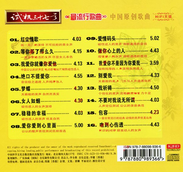 专辑中文名: 试音宝典-试机三十七号