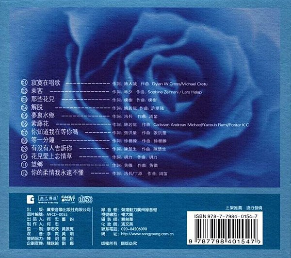 : 01. 寂寞在唱歌 02. 乘客 03. 那些花儿 04. 解脱 05. 梦里水乡 06. 紫腾花 07. 你知道我在等你吗 08. 等一分钟 09. 有没有人告诉你 10. 花儿爱上忘情草 11. 望乡 12. 你的柔情我永远不懂