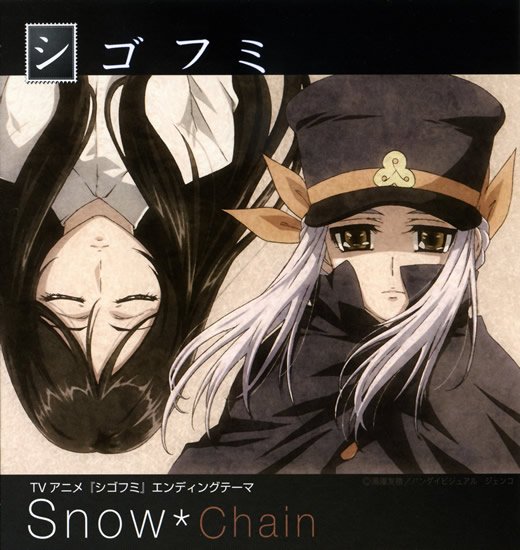 【剧情介绍】 人在现世的生存中,会碰到很多不符合条理的事情. 各种各样的经历,朋友关系,家族和对未来的不安 作为那些的一个结果就是"死亡".选择死亡的人,以及被赋予死亡的人 "如果能知道已经死亡的人想传达的信息的话.." 死亡之人给现世之人传送信件"死后文(シゴフミ)"的故事开始了 已经死亡的人的想法? 想向现世人传达的思念是? 积攒着缠绕死亡的插话.. 传达着自己的生存理由和生前之事 这个就是"死后文(シゴフミ)" 【单曲介绍】 TVアニメ「シゴフミ」ED主題歌: Chain http://www.neowing.co.jp/pictures/s/10/31/LACM-4456.jpg * 商品番号: LACM-4456 * メディア: CD * 組枚数: 1 * 発売日: 2008/02/06 * 価格: 1200円(税込) 【Artist&Cast】 Snow* (アーティスト) こだまさおり (作詞者)  大竹佑季 (作詞者) 村山☆潤 (作曲者)  * 内容 TVアニメ「シゴフミ」のエンディングテーマ! 佐藤竜雄×大河内一楼によるオリジナル作品を歌うのはSnow*。 【收录曲目】 1. Chain 2. 眠れる森につたわる詩 3. Hello bye-bye 4. Chain(instrumental)