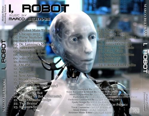 《机械公敌 I, Robot》本来也许能成为Marco Beltrami的一部经典之作,不过在Trevor Jones离开项目后,被临时找来救场的Beltrami只有短短的17天的时间来完成这部作品,而且是从零开始!这对于年仅36岁的他确实是一个艰巨的任务,不过之前2000年《终结者3 机器的起义 Terminator 3: Rise of the Machines》中他的主流风格的确定以及2004年《地狱男孩 Hellboy》中不俗的表现都证明了年轻的Beltrami完全有能力独自驾驭整部科幻电影配乐。在《I, Robot》中,Marco Beltrami一反常态没有把电子音乐放在首位,而是把交响乐作为主力使用,这让很多评论家感到疑惑,毕竟对于一部讲述机器人的科幻影片,电子乐能够更好的表现机器的特质。不过在End Credits中,他用Theremin(特雷门,一种电子乐器)仿效女性声线Solo出主旋律,实在是非常有趣而且颇为成功。