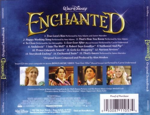 配乐也充分展现了Alan的实力。Alan指导迪斯尼浪漫爱情动画配乐一直非常出色,像《小美人鱼》、《美女与野兽》、《阿拉丁》、《风中奇缘》等都是大家耳熟能详的作品。这次的《魔法情缘》虽然从故事上有些老套,不过迪斯尼的经典不久在此么。美轮美奂的旋律,揉和动作、喜剧和奇幻色彩的配乐,优美的主题曲,再一次把我们带入神奇的迪斯尼童话世界。