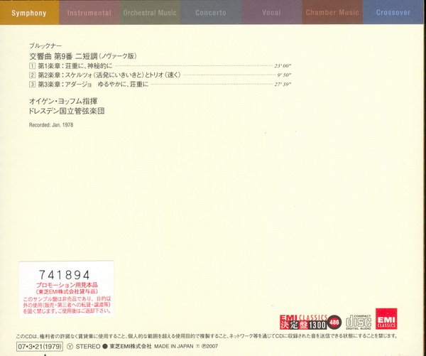 Eugen Jochum -布鲁克纳第九交响曲 Anton Bruckner Symphony No.9 日本版[MP3!]
