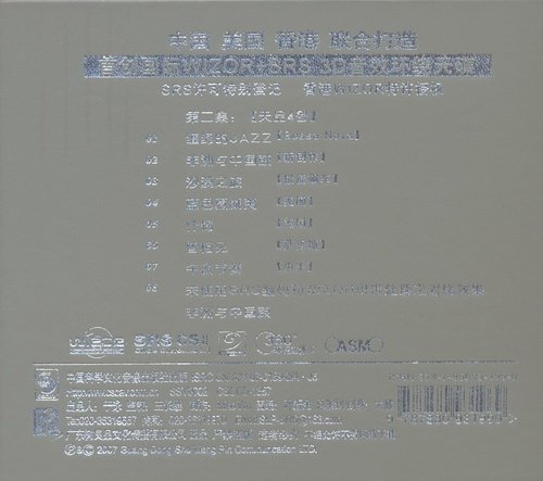 : 01. 缠绵的JAZZ【Bossa Nova】 02. 非洲与中国鼓【新创作】 03. 沙漠之里 【极度飙车】 04. 蓝色夏威夷 【美国】 05. 什锦 【美国】 06. 曾相见 【萨克斯】 07. 午夜节奏 【南美】 08. 非洲与中国鼓【未使用SRS编码和WIZOR母带处理之对比效果】