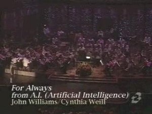 约翰-威廉斯此番以电子合成器弥漫的气息,配以传统交响乐带出的瑰丽气度,同时糅合室内乐、小夜曲、催眠曲、新世纪音乐等各种类型曲式来打造《人工智能》。通过这一系列的音乐元素的穿插、互动、堆积,充分突现了电影画面内外那种科幻的迷乱、宗教式的氛围、人与人之间的美好感情、冒险旅程的刺激与危险,当然还有斯皮尔伯格刻意描绘出来的童趣情境。从音乐所产生的效果上看,电子乐器与传统管弦乐之间的冷暖音调美妙融合,相互渗透,营造出感性与理性、激情与宁静并存的幻想空间,无论从音乐与电影的结合度,还是将它当作一款纯粹的音乐作品,都可圈可点,相当引人入胜。   在主题歌的演唱方面,唱片制作人也动了不少脑筋,电影的主题歌曲“For Always”,请来了词曲创作名家Cynthia Weil与获得14座葛美奖的超级制作人David Foster携手共同创作,交由融合了Celine Dion、Barbra Streisand等大牌女歌手声音特质的加拿大歌后Lara Fabian,与年仅19岁却深具古典男中音特质的新生代歌手Josh Groban深情合唱,成就出一首横跨古典与流行的真情极品。   本张电影原声录音效果之宏伟,是可想而知的。电子合成器的奇异音色效果随时飞跃音响的三度空间,庞大的管弦乐更是波澜壮阔,恢宏无比,将听众无时无刻不包围在电影所营造的神秘气氛之中,随时控制着听众的呼吸和心跳。