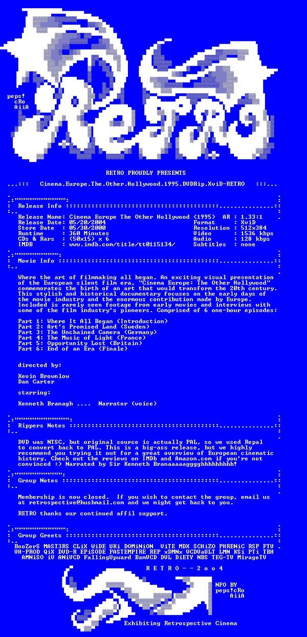 Part1、2、3中文字幕时间轴已调好,请重新下载! 中文片名:欧洲电影史 英文片名:Cinema Europe The Other Hollywood 屏幕尺寸:512X384 屏幕比例:1.33:1 视频编码:XviD 持续时间:360Mins 视频比率:1536 Kbps 音频编码: 音频比率:128 Kbps 字 幕:中文(感谢 纪录片之家 天下兄 提供,不知能否对上这一版本)/已调好中文字幕,感谢dlb2825提供 User Rating: 8.9/10 (110 votes) 简 评: 这是一套足以让任何一个资深影迷和电影工作者都为之兴奋的产品,它系统地阐述在过去100多年里,电影艺术在欧洲从诞生到发展、壮大、开拓的过程,按照地域的划分系统性地对欧洲主要各国在电影艺术上的发展做了一个梳理。第一集首先就给观众讲述了电影艺术在1895年诞生的过程,由法国卢米埃尔兄弟所拍摄的《火车进站》、《工厂大门》等珍贵片段都被收录其中。第二集讲述的则是瑞典的电影,瑞典作为北欧最为重要的电影艺术发展国家,曾经诞生了伯格曼等著名大导演,但谁又曾想到,他们也经历过电影的低谷。1912年所有瑞典电影人聚集在一起的一次盛会真正让瑞典电影走向了世界的前沿。第三集则来到了法斯宾德、文德斯等的故乡德国,早期的表现主义电影正是从那里诞生而来,成为德国电影的标志之一。新浪潮运动的发源地法国是第四集的主角,它详细介绍了法国电影工业在战争后的复苏与巨大先导性,其中选用了许多耳熟能详的电影片段。第五集则带领我们来到了英国,这个发明出特写镜头和蒙太奇技术的欧洲文化大国却在一战以后开始没落,被其他欧洲国家赶超,但它并没有气馁,一直以其独特的古典意韵在世界电影中独树一帜。在第六集里我们将详细看到有声电影工业对电影发展历史的影响。    本套作品是1996年由专拍电影史纪录片的Kevin Brownlow和Dan Carter合作拍摄的电视系列片,由英国著名影星肯尼斯·布拉纳担任旁白,是电影爱好者入门不可或缺的资料。