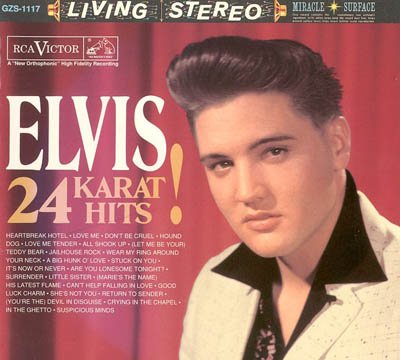 在历经半个世纪后,摇滚乐早已成为20世纪人类最伟大的发明之一。而在那个摇滚乐诞生的年代里,身为首位将流行音乐普及化、率先将白人乡村音乐与黑人蓝调音乐予以融合,并将类Rock ’N’ Roll曲风、甚至於教堂的福音音乐…等作品,推进了排行榜的划时代人物,不仅已成为首位红遍英美、袭捲全球的摇滚巨星,奠立了其永恒的偶像地位,更已赢得大眾的尊崇,称呼他为"The King"─摇滚乐之王。猫王在1977年他42岁的时候就由于心脏病突发去世,但歌迷们对他的热爱并未因此消逝。30年过去了,他依然活在人们的心中(很多电影中都可以听到这句台词:ELVIS NEVER LEAVE US)。这张专辑发行在十年前,用"24K"来形容其纯度,一点都不为过。