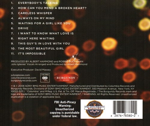 今年(2006)9月19日,作为流行乐史上最畅销的拉丁歌手,同时也是流行乐史上最畅销的十位流行歌手之一,西班牙国宝级艺人——胡里奥,将推出个人最新的英文专辑。 这张名为《Romantic Classics(浪漫经典)》的专辑,是他继1994年的经典专辑《Crazy》之后的首张英语作品。之所以被定名为“浪漫经典”是因为这张专辑中所收录的歌曲都是由Julio亲自从上世纪60、70、80年代的流行经典中挑选出来,共11首情歌;横跨流行、摇滚、乡村等不同音乐风格;而这些歌曲的原唱者也是大名鼎鼎,包括:Willie Nelson、George Michael、the Bee Gee、The Cars、Richard Max等。 Julio请来了两位知名制作人Albert Hammond、Robert Buchanan来制作这张专辑,整张专辑分别在洛杉矶和Punta Cana录制。“Careless Whisper”、“Right Here Waiting”、“Everybody's Talking”等歌曲在Julio Iglesias那不老的嗓音演绎下别有一番滋味。 “在做这张专辑时,我一直在想如何才能使一首流行歌曲变成经典?怎样的歌曲不仅能在排行榜上折桂,而且能不断在人们耳畔、心中回响,永留在人们的记忆里?”Julio在为专辑作序的时候写道,“我为这张专辑所选的歌曲都忽略了时代的界限,她们都只关乎一个主题,那就是浪漫! 从沉醉、到出卖、到心碎;每首歌曲的旋律都让你难以拒绝,每首歌曲的歌词都让那些正享受着爱情的快乐或体验着心碎的痛苦的人们感同身受。我用心地重新演绎这些金曲,使她们更贴近现在的听众。我希望那些熟悉这些歌曲的歌迷可以再次领略这些金曲的魅力;而那些第一次听到这些歌曲的歌迷会和我第一次听到这些歌曲时一样尽情享受。