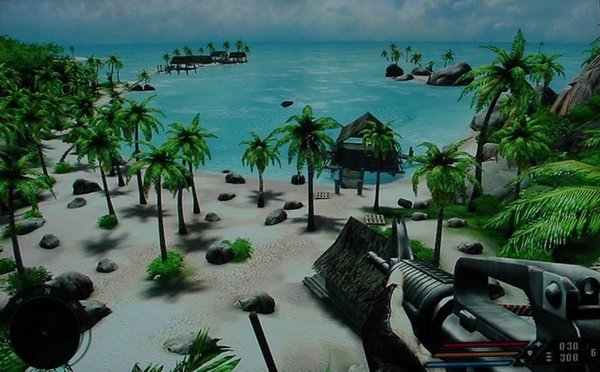 《孤岛惊魂》最大的特点是3D引擎‘CryEngine’,多边形贴图(POLYBUMP)比凹凸贴图(Bump Mapping)更先进,在平滑的3D模型上贴上多边形贴图,除了会有凹凸质感外,更具备了多边形顶点位移的运算效果,但却不会增加多边形数目。