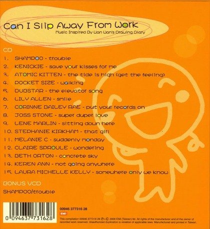 : 01. Trouble - Shampoo 02. Save Your Kisses For Me- Kenickie 03. The Tide Is High (Get The Feeling) - Atomic Kitten 04. Walking - Pocket Size 05. The Elevator Song - Dubstar 06. Smile - Lily Allen 07. Put Your Records On - Corinne Bailey Rae 08. Super Duper Love - Joss Stone 09. Sitting Down Here - Lene Marlin 10. That Girl - Stephanie Kirkham 11. Suddenly Monday - Melanie C 12. Wondering - Claire Sproule 13. Concrete Sky - Beth Orton 14. Not Going Anywhere - Keren Ann 15. Somewhere Only We Know - Laura Michelle Kelly 本专辑已加入mp3共享计划