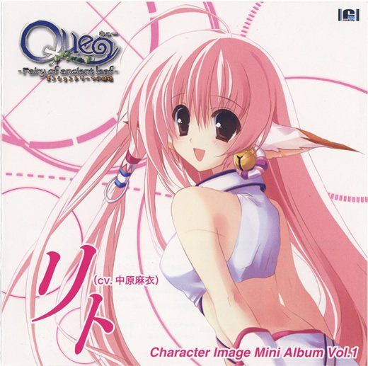 遂に発売! あのQUEのキャラクター達が歌うイメージソング! + ショートドラマ! FiveGames制作"QUE"の各ヒロインが歌うイメージソングを各1曲収録。Vol.1は"リト"(CV: 中原麻衣)をフィーチャー。オリジナルキャストによるショートドラマに加え、各キャラソンのアレンジバージョンも収録。亞砂氏描き下ろしジャケット。