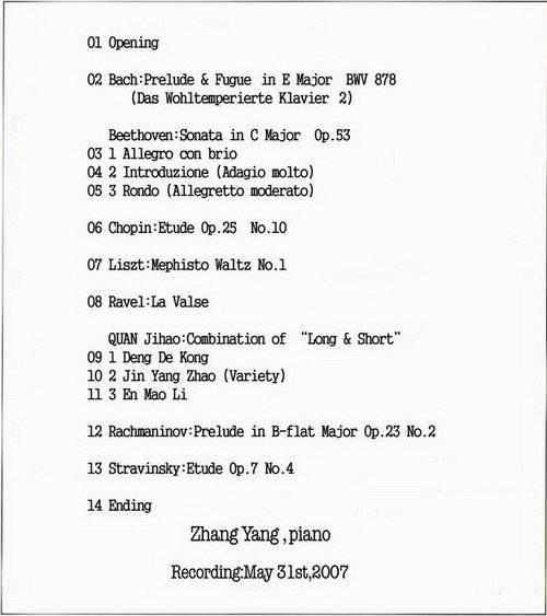 专辑英文名: Zhang Yang Piano Recital