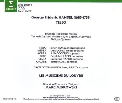Teseo,亨德尔的五幕歌剧,作于1713年,由N. F. 海姆撰写脚本,该版本企鹅三星。~摘自“音乐圣经”