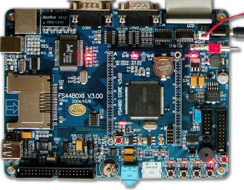 FS44B0XII V3.0是核心板(4层板)+底板(双面板)结构,有助于迅速研发自己的产品! 该板扩展接口丰富,具有USB HOST与USB Device接口、SmartMedia卡、IDE硬盘、10M以太网接口、音频输出接口、PS/2接口、串口,以及可支持触摸屏的LCD接口。 核心板采用四层板,PCB布线极度优化,可以稳定运行到74MHz,mp3解码轻松实现!