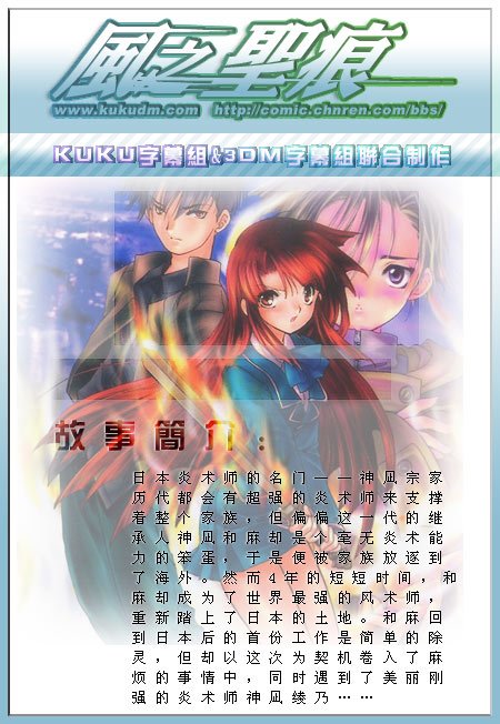 故事简介:日本炎术师的名门——神凪宗家历代都会有超强的炎术师来支撑着整个家族,但偏偏这一代的继承人神凪和麻却是个毫无炎术能力的笨蛋,于是便被家族放逐到了海外。然而4年的短短时间,和麻却成为了世界最强的风术师,重新踏上了日本的土地。和麻回到日本后的首份工作是简单的除灵,但却以这次为契机卷入了麻烦的事情中,同时遇到了美丽刚强的炎术师神凪绫乃……