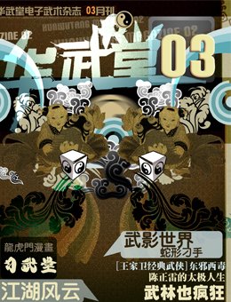 谁说武林正在消逝?谁说武林离你很远?《华武堂》让你知道,原来我们始终生活在武林之中,原来武林也可以很疯狂……史上第一本面向青少年群体,将时尚娱乐元素融入到武术文化之中的电子杂志。 本期精彩内容 http://mag.zcom.com/preview/image//6458/PR6458I4W166H122.jpg http://mag.zcom.com/preview/image//6458/PR6458I7W166H122.jpg 江湖风云,谁主沉浮 功夫之星,闪耀夺目 侠骨柔情,爱恨情仇 武林名宿,太极宗师陈正雷 《吴氏太极拳传统套路83式》 《蛇形刁手》能打才是真功夫 http://mag.zcom.com/cover/6295.jpg   经过小编们辛勤赶工,第二期《华武堂》电子杂志终于在春节前与大家见面了。在此新春佳节之际,恭祝各位看客春节快乐。这期杂志的主要内容有:现代版“华山论剑”全国传统武术大赛隆重举办;“中国散打第一人”柳海龙专访;王家卫经典武侠片《东邪西毒》;《龙争虎斗》给你好看 本期精彩内容 http://mag.zcom.com/preview/image//6295/PR6295I5W166H122.jpg 现代版“华山论剑”精彩纷呈 “中国散打第一人”柳海龙专访 42式太极剑 《龙争虎斗》告诉你什么是经典 《东邪西毒》之邪恋 郭德纲《丑娘娘》让你乐翻天 http://mag.zcom.com/cover/6050.jpg   《华武堂》电子杂志终于与大家见面了,作为史上第一本时尚类型的武术电子杂志,《华武堂》旨在利用全新的多媒体阅读体验来吸引更多的青年人关注中华武术,弘扬博大精深的中华武学精神。 本期精彩内容 http://mag.zcom.com/preview/image//6050/PR6050I8W166H122.jpg 中华武术健儿称雄亚运赛场 吴连枝技冠东瀛 四十二式太极拳 世界十大功夫电影,呈现经典 《茉莉·神雕侠侣》 谁说武林将会逝去?! [通过安全测试] 杀毒软件:Mcafee VirusScan Enterprise 版本:8.0.0 病毒库:2007-06-20 共享条件:网通ADSL 11.0 Mbps 常驻服务器:Donkeyserver No1 共享时间:AM9:00-PM6:00