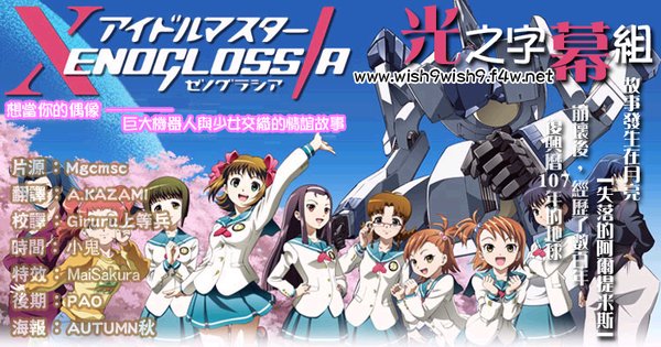 故事发生在月亮..."失落的阿尔提米斯"崩坏后,历经了数百年,复兴历107年的地球... ...想当妳的偶像-----巨大机器人与少女交织的情谊故事~ 《偶像大师》,又名《偶像代理人》,是NAMCO公司在日本推出的一个集育成、音乐与一身的街机游戏。玩家扮演经理人,培育一位少女成为流行偶像。当中有10位女主角可以选择(而且大部分都是LOLI ),游戏内容包括了从女主角的日常训练到登台演出,游戏服装及其丰富。去年7月份官方曾公布本游戏将移植X-BOX360,而动画版《偶像大师》的消息也在去年9月公布,动画命名为《偶像大师XENOGLOSSIA》,4月播出,监督为担任过《蜂蜜与四叶草》监督的长井龙雪,系列构成为花田十辉,动画人设为竹内浩志。动画是由日升社制作,奇妙的是无论是人设还是故事都发生了翻天覆地的变化,原本一个美少女养成游戏就这样变成了萝卜+LOLI的奇怪动画,似乎已经与偶像养成完全靠不上边了。虽然不用担心日升社的作品质量,不过对于这种颠覆原案的革新还是令人不由得替日升捏了把冷汗,必竟原作的FANS群也是颇为壮观的……