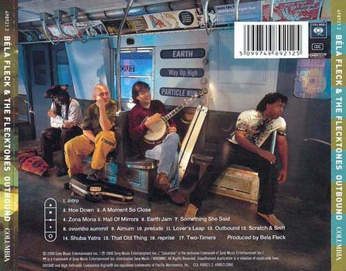 After a decade with Warner Bros., Béla Fleck jumped to Sony's Columbia Records, signing a five-record deal that called for two releases on Sony Classical, a solo album, and two discs with his band the Flecktones of which Outbound is the first. It is a typically eclectic effort. For example, the Fleck original "Shuba Yatra" (its title, he explains in the press materials, "is an Indian term that means taking a journey with a safe return") features a tabla player and Fleck on a "sitar banjo," an electrified instrument with a banjo head and a sitar bridge. Such instruments give the tune something of an Indian flavor, except that much of it is borrowed from traditional Irish music with a touch of South African rhythm. Such odd juxtapositions of instrumentation and style are typical not only from track to track but also within tracks. Fleck and his band mates seem to view all styles of music as readily and randomly interchangeable, but sometimes, as with a colorblind person picking out clothes, the results clash or otherwise disturb, and the rest of the time they come off as flashy and insubstantial. Fleck really offers no defense to the charge of being a musical dilettante, he simply celebrates the surface pleasures of different varieties of music, offering an overlapping series of appetizers. A fan of any particular style is liable to feel that it has been trivialized, but Fleck doesn't mean any harm. His music represents the pursuit of facileness as a musical goal, one that he and his band achieve with alacrity.