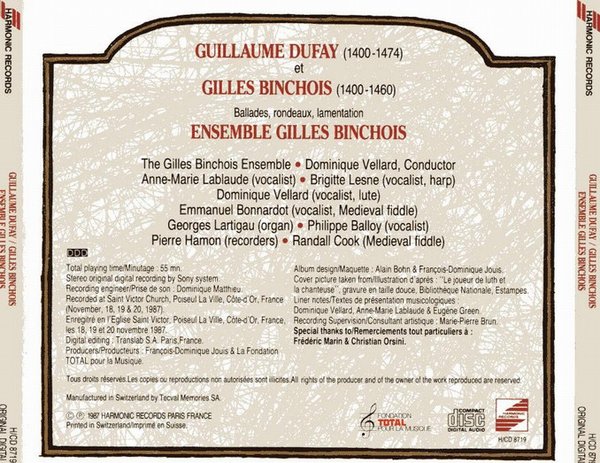 专辑英文名: Chansons de Guillaume Dufay et de Gilles Binchois