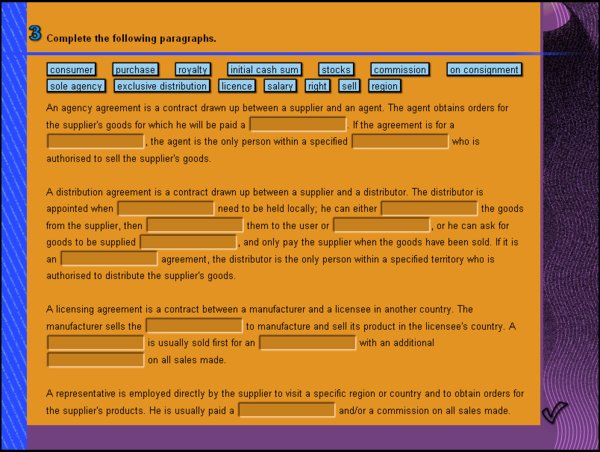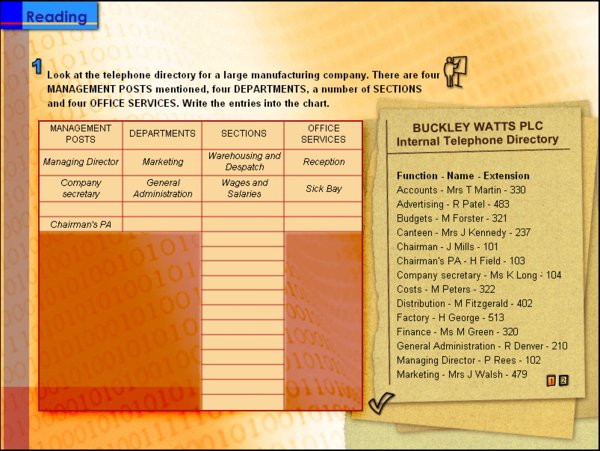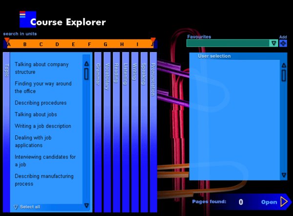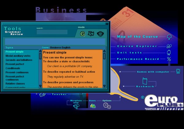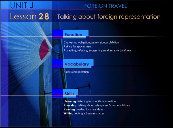 该学习软件,可以联机学习(但是应该是要正版用户才有的服务吧!我们免费的东西不知道可不可以)!联机学习的服务看起来是非常不错的!另外单机学习做的也非常赞!单机学习分为Course Explorer,一共有30课,从发音,语法,听力,阅读,词汇,书写,口语各个方面综合训练!有效地训练了一些商务中的语言技巧与对应能力!全方位有效地提高你的英语水平!每单元还有UNIT TEST测试你的学习效果!另外,还有制作得非常精良有趣的游戏,来巩固你的学习成果,让你在娱乐休闲的同时,还享受着学习的乐趣! 下面我做的真实截图可以让你进一步感觉教程的内容!看截图也非常有吸引力哦! 这套教程非常棒!!本人非常喜欢!也强烈推荐!也强烈恳求下载完的朋友帮忙共享一下哦。。 安装时需要序列号:上面ED2K链接有序列号文件,下面也有贴出序列号. 注意:补丁一定要打! 安装方法(一定得安装好!否则运行起来会不大顺利): 1.经测试,在WINDOWS XP下运行 OK 2.用新版DAEMON TOOL载入镜像,或用ALCOHOL120%等等。。 3.运行SETUP光盘,CDROM\SetupGB\Setup.exe, 用序列号BE2-11290-gDU1-PL安装(CDROM\SetupGB\Setup.exe是英语安装) 4.重启后安装补丁BUSINESS_ENGLISH-Patch.exe。下载地址:HTTP链接:http://www.mediatrade.com/grafika/custom/p...atch.exe或者上面ED2K链接。 5.载入学习光盘CD1或CD2 6.运行学习软件,享受学习乐趣吧!