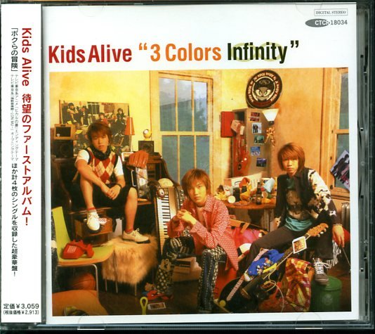 这张CD是CUTTING EDGE旗下人气组合KIDS ALIVE在2002年初发手的全新大碟,同时也是他们的首张专辑.喜欢动画的朋友应该对他们非常熟悉的了,在2001年底KIDS ALIVE为著名漫画家小畑健的经典作品棋魂配唱新一季度的ED,可谓是有着白金级的人气啊!作为走纯J-POP风格的新生代乐队组合,KIDS ALIVE算是在同类中特点比较突出的.首先,乐队的3名成员都有着非常强劲的创作能力,同时加上他们对于流行的特殊理解,充满多种乐风和音乐性的作品陆续诞生.最主要的是他们对音乐世界的美好向往以及年轻的越动感.相信我们也能够在他们的音乐世界里找到答案.不过遗憾的是在2003年底KIDS ALIVE解体了,这对于歌迷来说是个非常大的打击.不过我相信他们绝对不会停止自己的音乐创作,一定会走得更好!!! 专辑的KEY WORDS