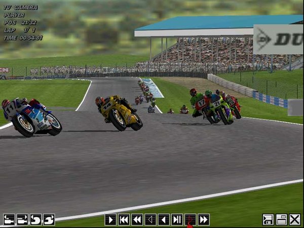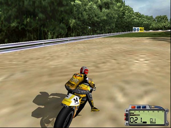 Superbike WORLD CHAMPIONSHIP(EA超级摩托车2000/2001的前身),虽然这比SBK2000或2001旧些,只是画面没它的这两后续版本的华丽,但它的某些特点直到现在的MOTOGP3还在模仿他的,你说NB不NB!!!