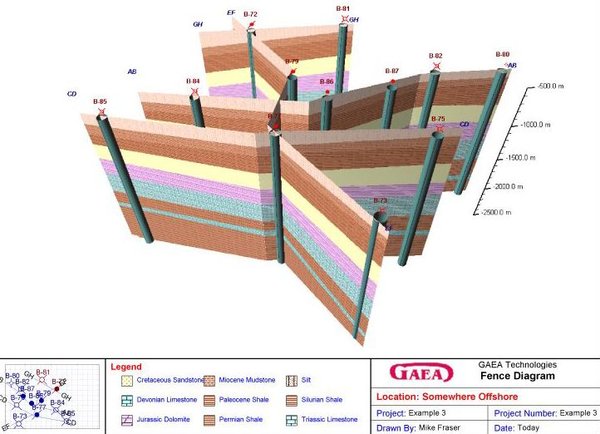 WinFence can be used to graphically create detailed, full-color, cross-sections and fence diagrams quickly and easily. The program can be used to interpret and map soil and rock layers, contamination, fossils, minerals and hydrocarbons.