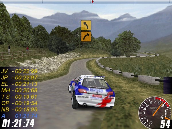 * 三种车手定位:新手、世界拉力冠军、传奇人物(就是变态难度)。 (RIP版是全部级别都开的,但ISO版里没附破解,要自己玩够才能升级)